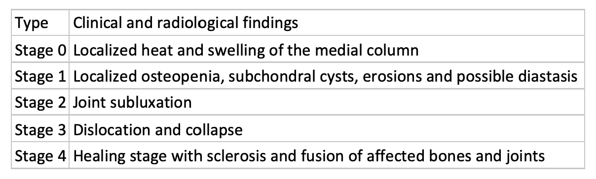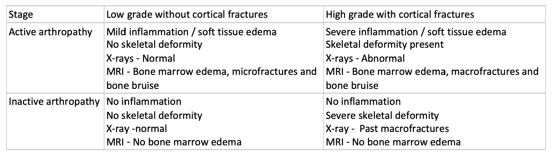 • Gouty deposits cause well corticated erosions with typical overhanging margins.